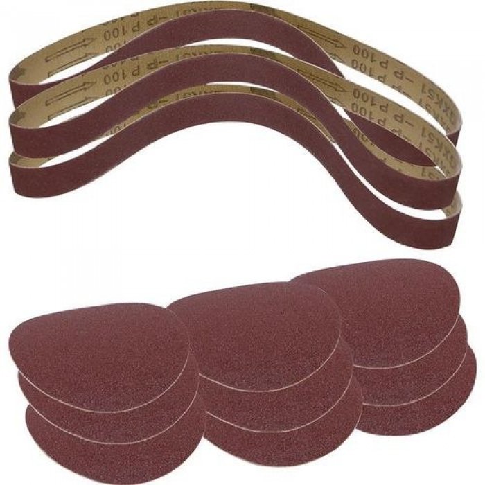 - Комплектация - 3 шлифовальных диска, К80; - 3 шлифовальных диска, К120; - 3 шлифовальных диска, К180; - 1 шлифовальная лента, К60; - 1 шлифовальная лента, К100; - 1 шлифовальная лента, К180; - упаковка