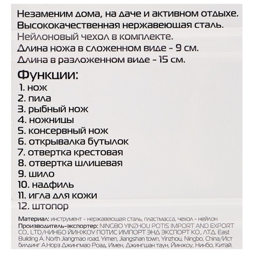 Нож многофункциональный ECOS SR083 11 функций с чехлом