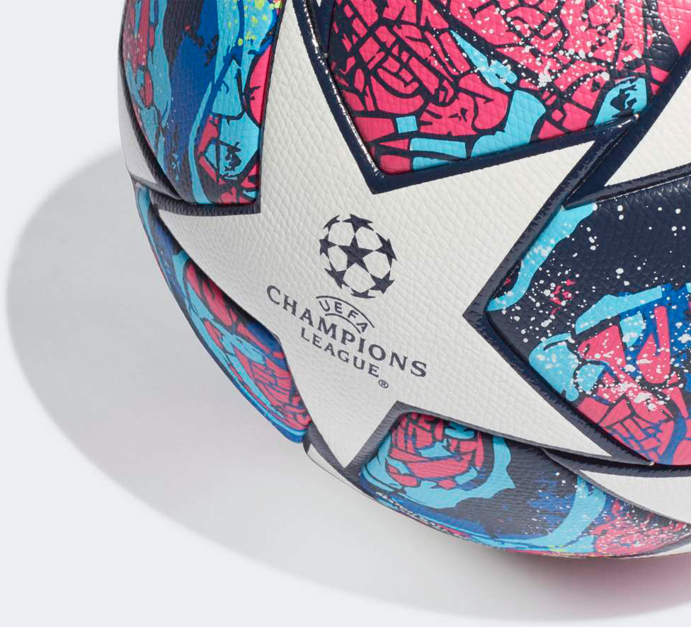 Тренировочный футбольный мяч. Дизайн мяча финала Лиги чемпионов сезона 2020 года. Сертификат качества FIFA. Материал покрышки: синтетическая кожа (термополиуретан). 32 панели. Тип соединения панелей: термосшивка. Бутиловая камера. Один подкладочный слой из синтетической ткани. Размер: 5.