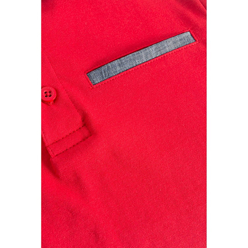 Однотонная футболка-поло с декоративным карманом. Имеются удобные застежки у горловины в виде пуговок Выполнена из натурального неаллергенного материала, мягкая и приятная на ощупь.