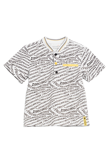 Стильная футболка-поло с короткими рукавами, декоративным кармашком и удобными пуговицами. Украшена принтом в виде надписей. Выполнена из натурального неаллергенного материала, мягкая и приятная на ощупь.