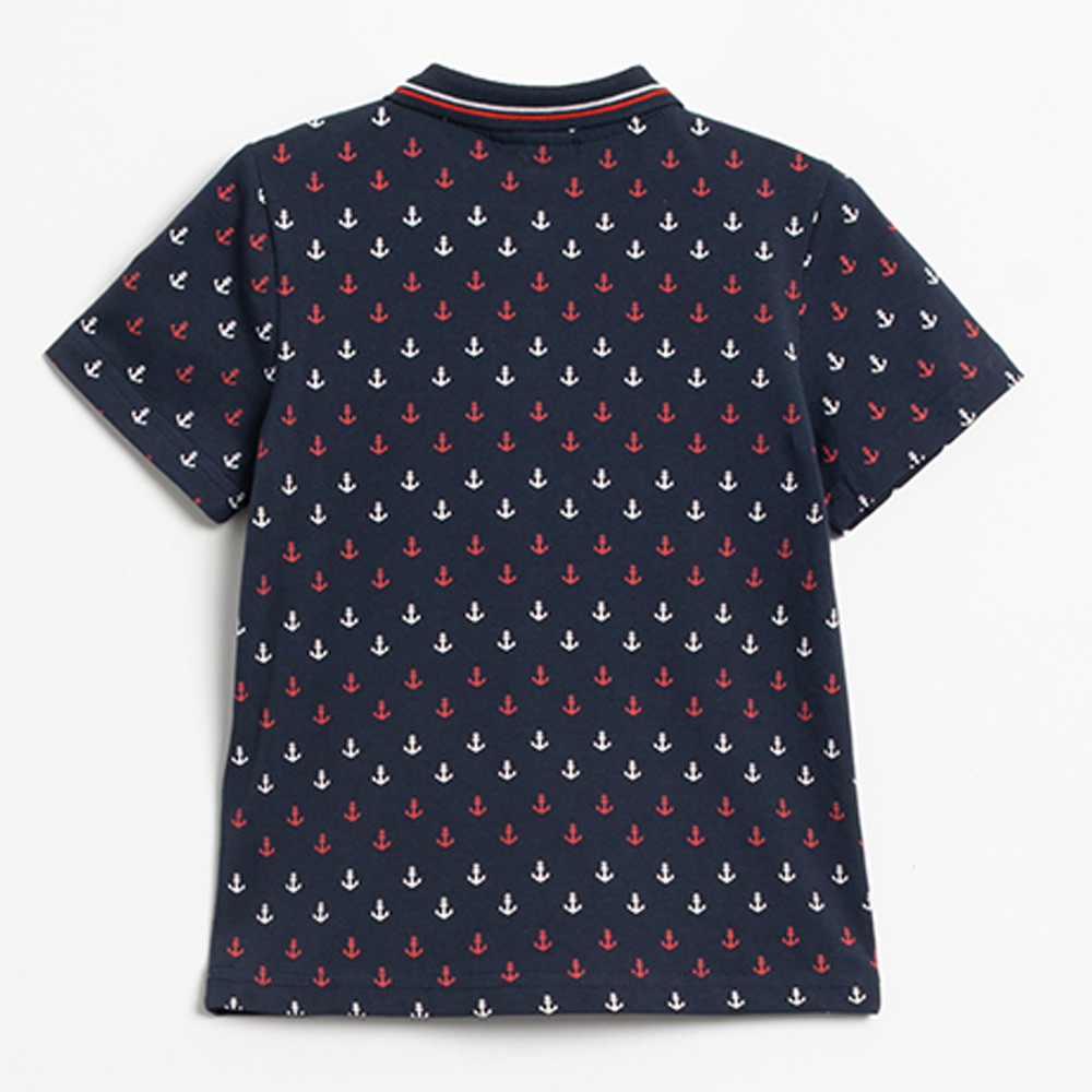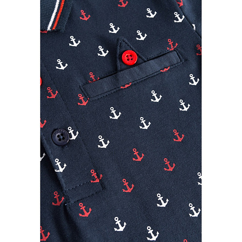 Стильная футболка-поло с короткими рукавами, воротником и удобными пуговицами. Украшена принтом в морской тематике и декоративным кармашком. Футболка выполнена из натурального неаллергенного материала, мягкая и приятная на ощупь.