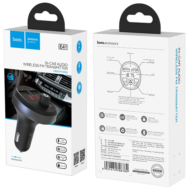 Автомобильное зарядное устройство с FM-трансмиттером 2xUSB Hoco E41 - Черное