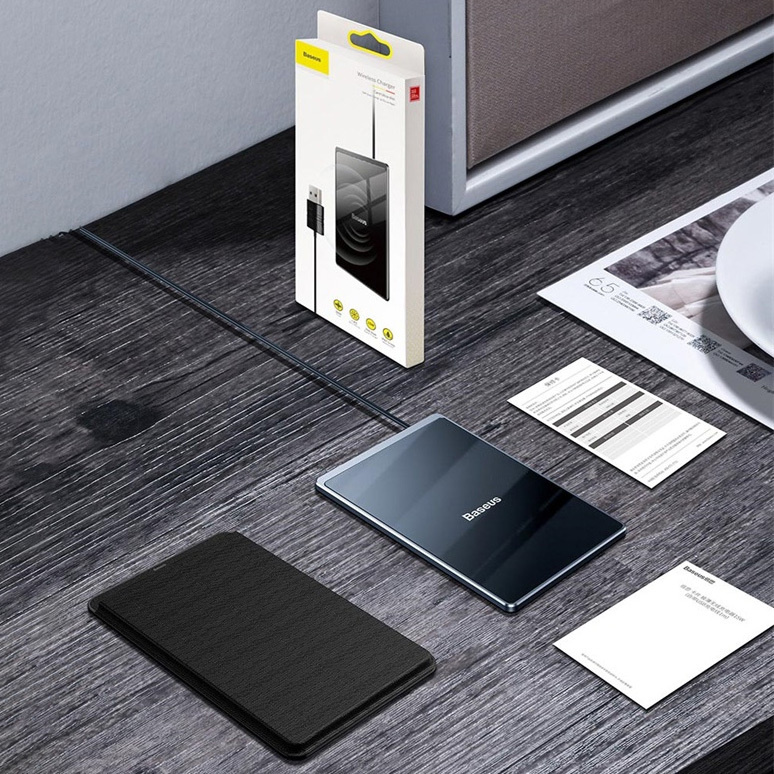Беспроводная зарядка для телефона быстрая Baseus Card Ultra-thin 15W - Черная (WX01B-01)