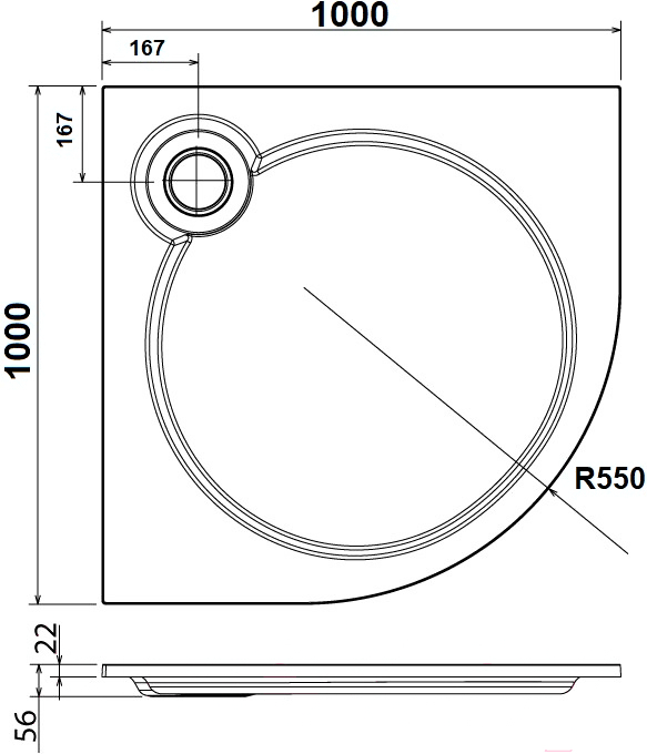 Душевой поддон Cezares Tray-S-R-100-550-56-W (100x100)