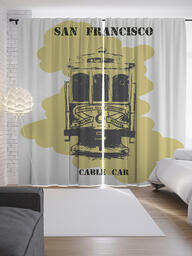 Шторы с фотопечатью "Старый трамвай" из сатена, 290х265 см