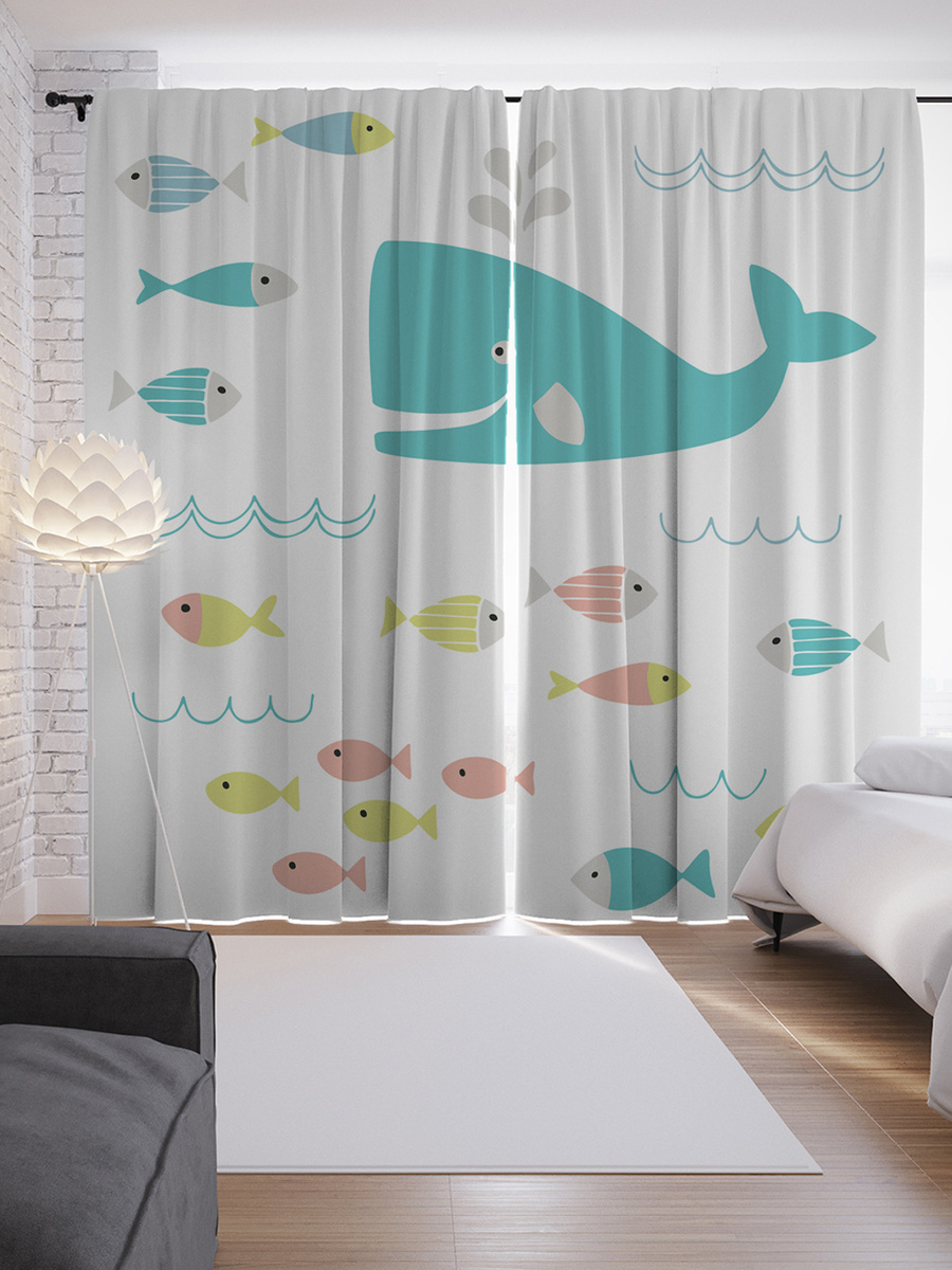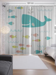 Шторы с фотопечатью "Морские рыбы и кит" из сатена, 145x265 см