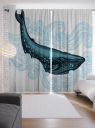 Шторы с фотопечатью "Китовая мощь" из сатена, 145x265 см