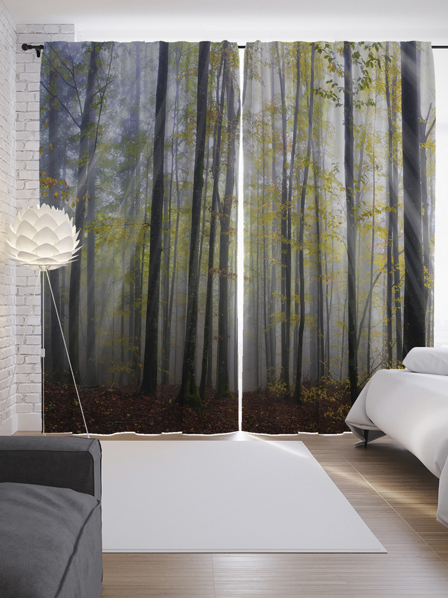 Шторы с фотопечатью "Лесное спасение" из сатена, 290х265 см
