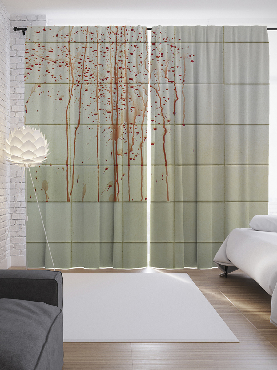 Шторы с фотопечатью "Брызги крови на кафеле" из сатена, 290х265 см