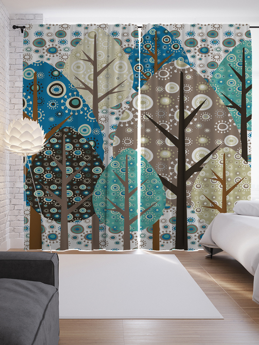 Шторы с фотопечатью "Лесные украшения" из сатена, 290х265 см