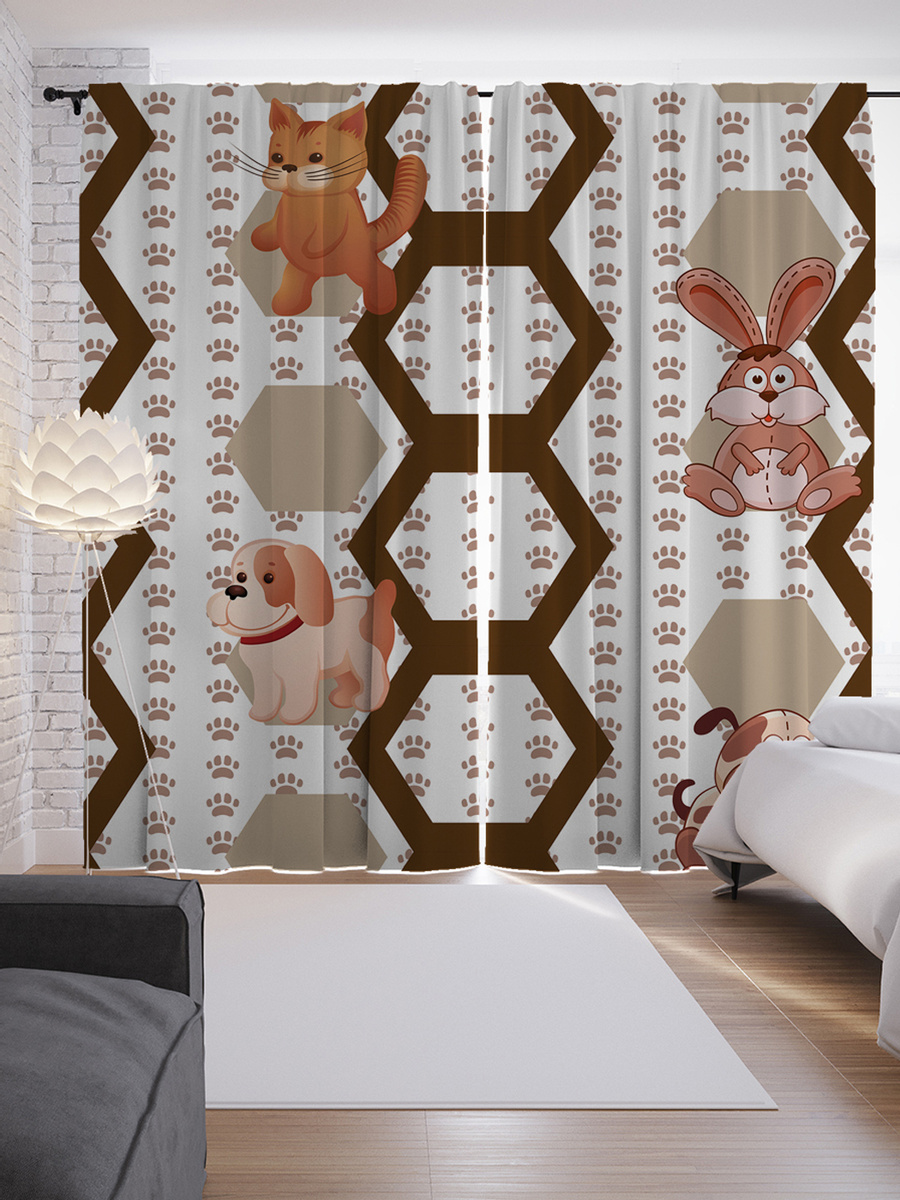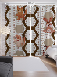 Шторы с фотопечатью "Собаки, кролики" из сатена, 290х265 см
