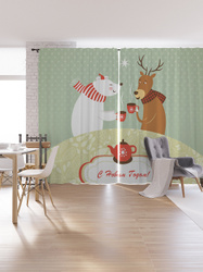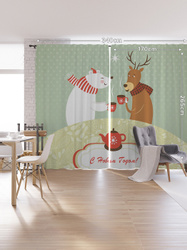 Шторы под лён "Чаепитие с друзьями", серия Oxford DeLux, 340х265 см