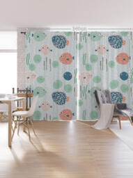 Шторы под лён "Улыбаки рыбки-ёжики", серия Oxford DeLux, 340х265 см