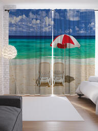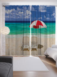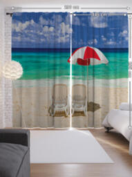Шторы с фотопечатью "Под пляжным зонтом" из сатена, 290х265 см