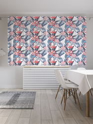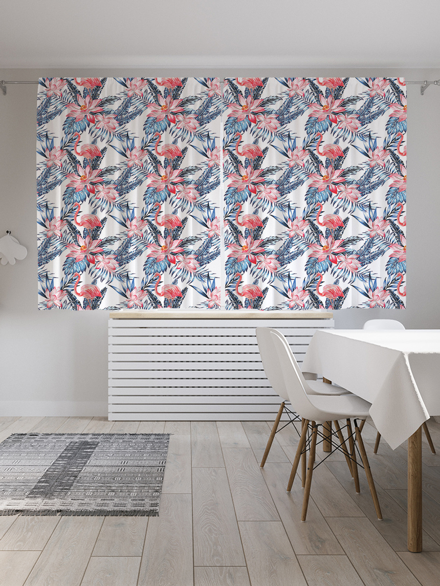 Шторы с фотопечатью "Фламинго в розовых цветах" из сатена, 145х180 см