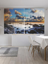 Шторы с фотопечатью "Каменный пляж под лунным светом" из сатена, 145х180 см