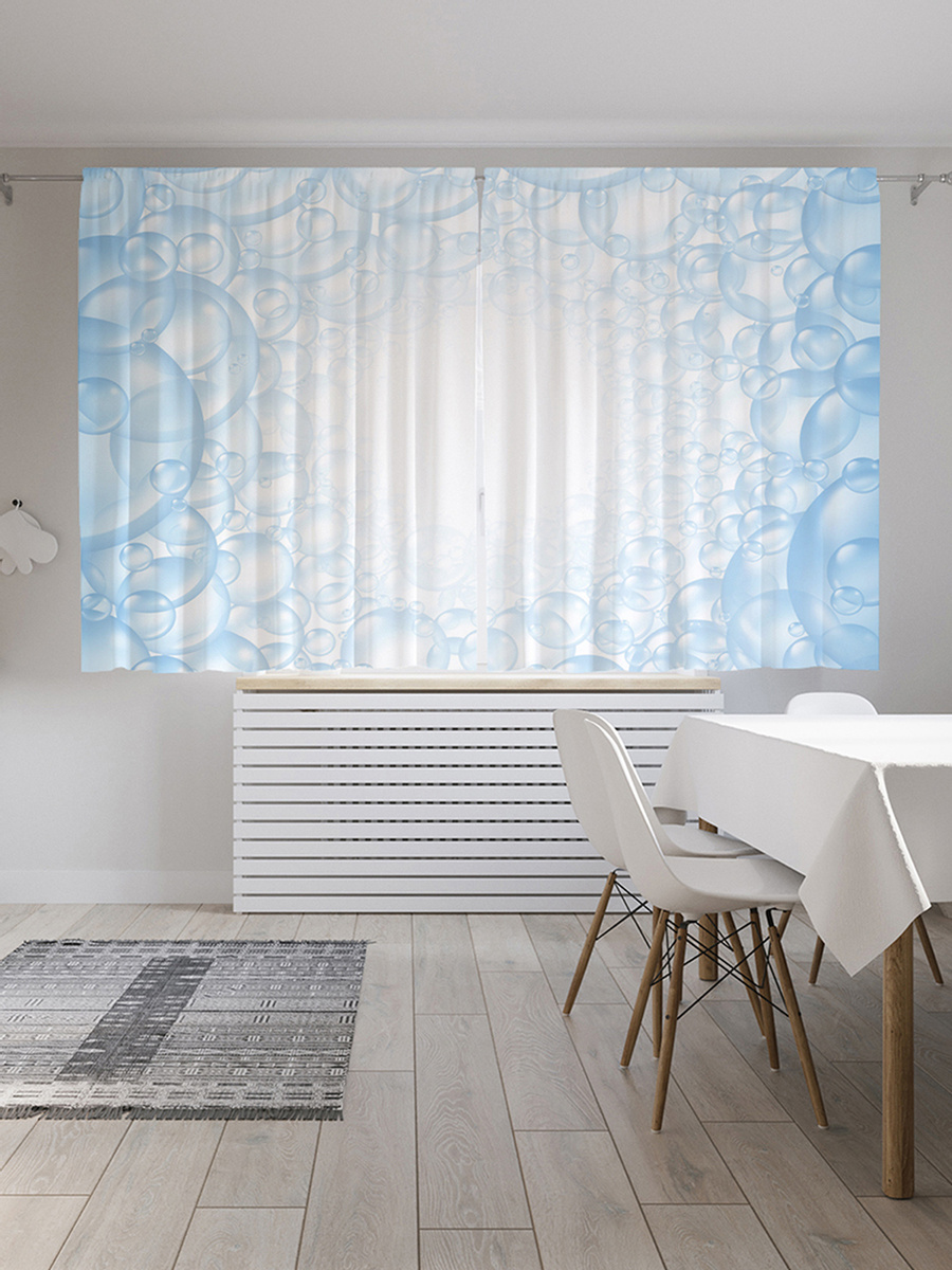 Шторы с фотопечатью "Синий пузырчатый тоннель" из сатена, 145х180 см