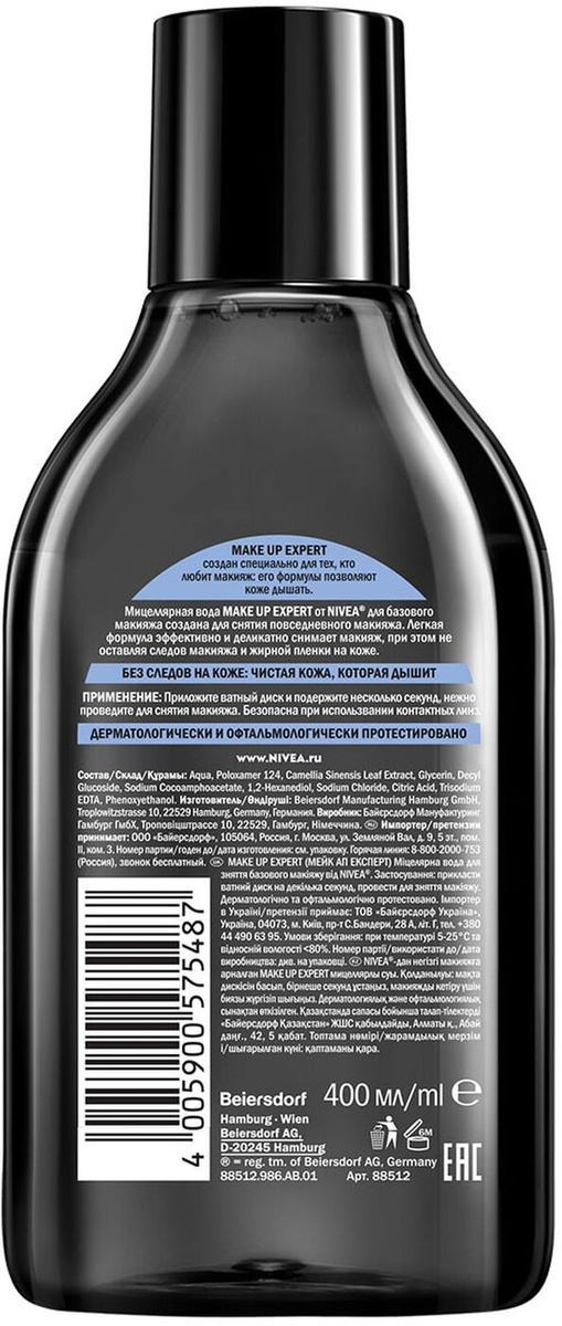 Nivea Make Up Expert Мицеллярная вода для лица и глаз без смывания, для базового макияжа, 400 мл.