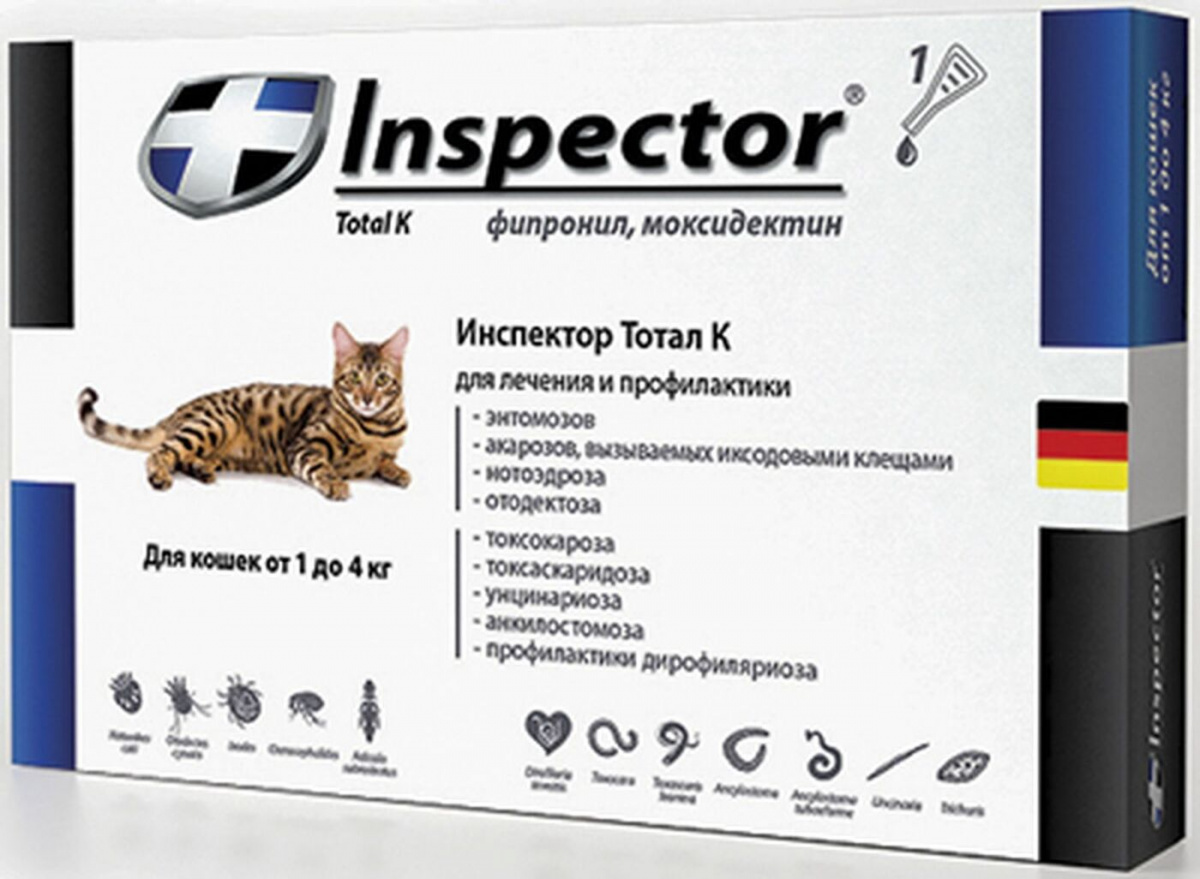 Лекарственное средство для животных Экопром I201 Инспектор Капли, для кошек менее 4 кг, от внешних и внутренних паразитов