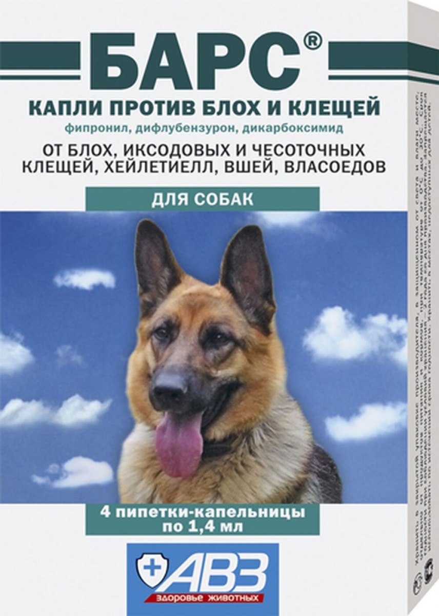 Лекарственное средство для животных Барс Капли, для собак, против блох и клещей, 4 пипетки