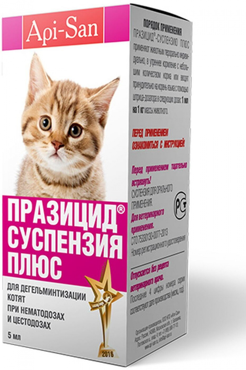 Лекарственное средство для животных Api-San Празицид суспензия плюс антигельминтик, для котят, 5 мл
