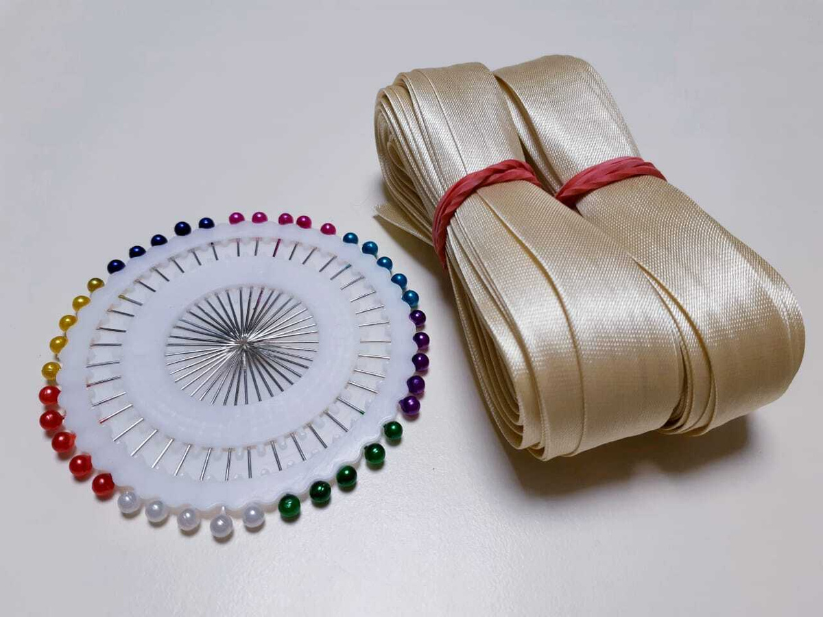 - Артикул Косая бейка атласная, бежевая 15 мм.
