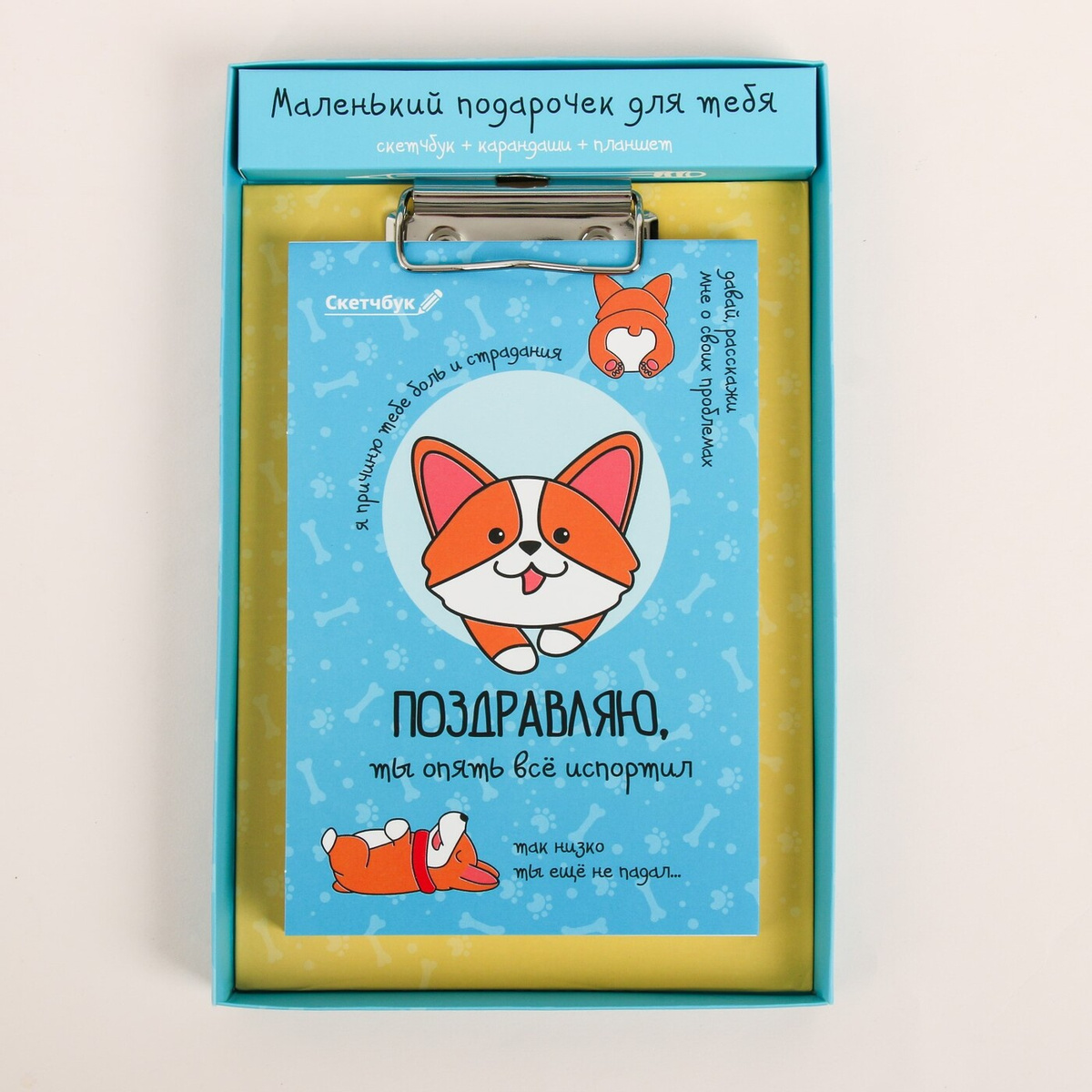 ArtFox / Набор скетчбук, планшет и цветные карандаши 6 шт "Злой корги"