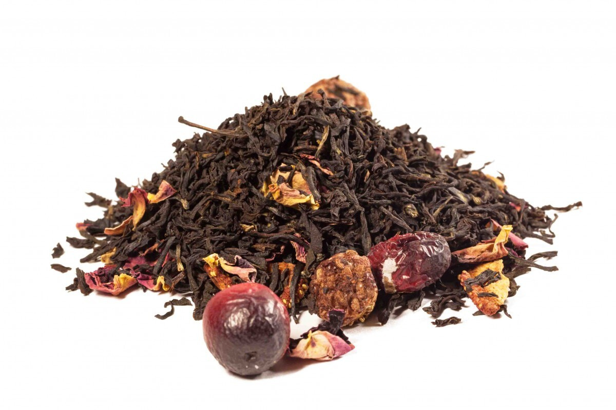 - Состав Черный чай, ягоды ежевики, ягоды клюквы, ягоды клубники, лепестки красной розы, ароматизатор
