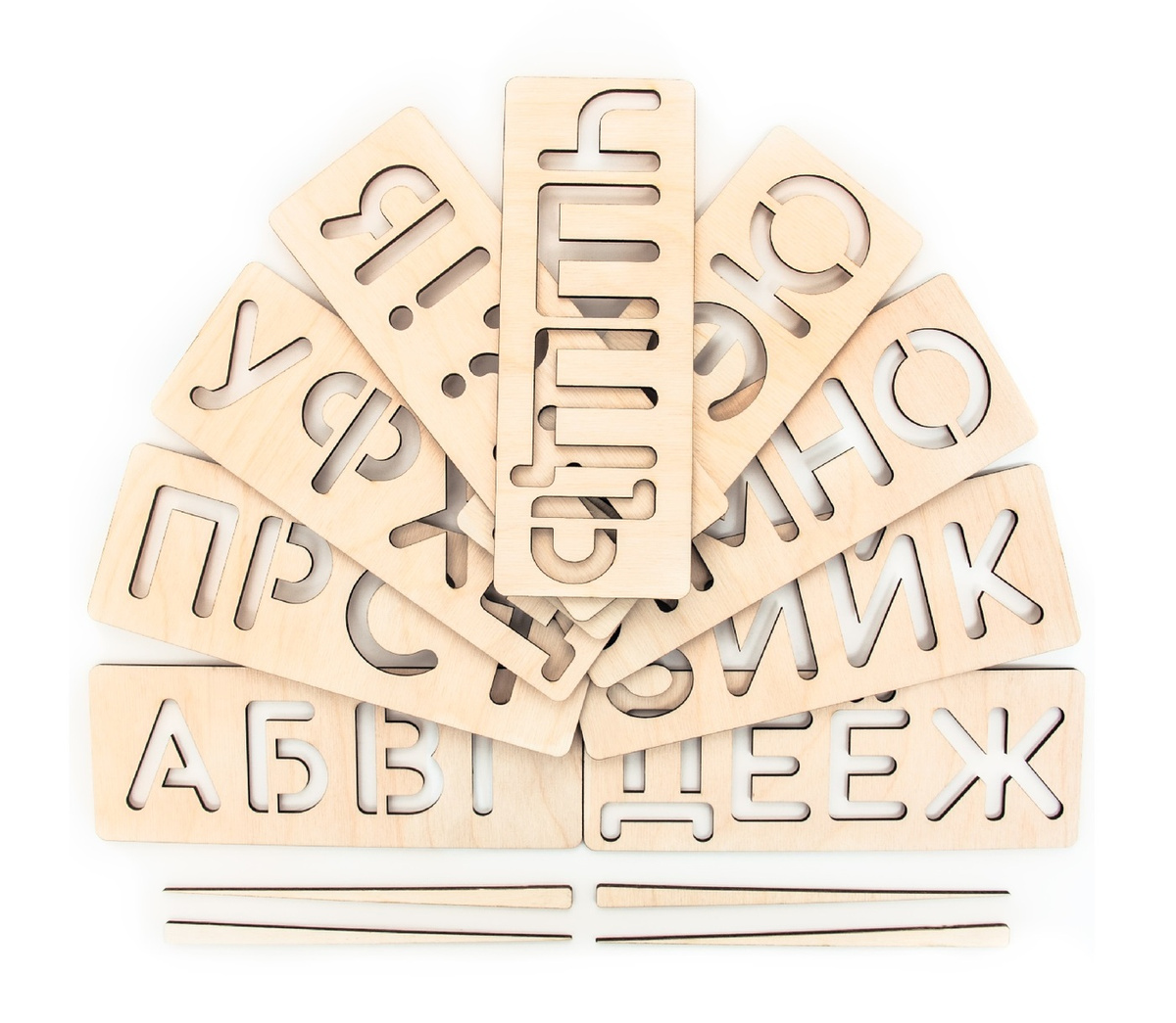 - Комплектация В комплект входит: Деревянный ящичек для хранения трафаретов — 1 шт. Трафареты – 9 шт. Стилусы для движения и обводок по трафаретам – 4 шт.