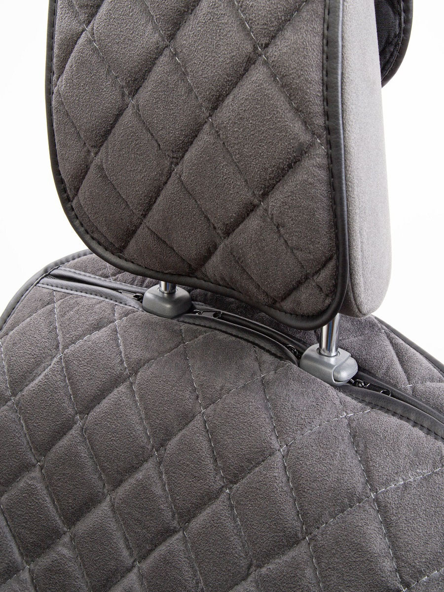 Накидки на передние сиденья "CarPerformance", 2 шт, алькантара + ромб, поролон 10 мм., тёмн.серый
