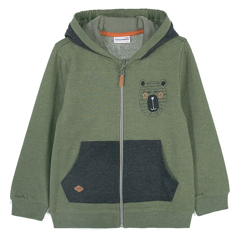 Стильная толстовка с милым рисунком медвежонка, кармашками и удобной застежкой-молнией. Внутри - мягкий приятный на ощупь ворс. Низ и рукава - на широкой эластичной резиночке для удобного прилегания. Выполнена из натурального неаллергенного материала.