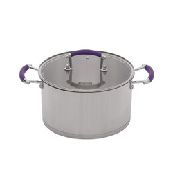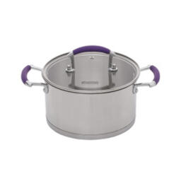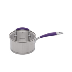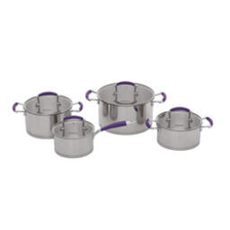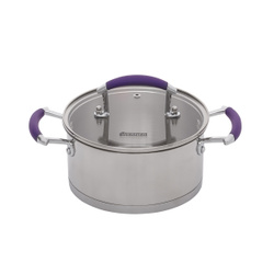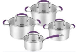 Набор посуды WERNER 0665 ROCCO 8пр 3 Кастрюли 2,1л/18см, 3,3л/20см, 5,9л/24см, 1 Ковш 1,6л/16см, 4 Крышки стеклянные. Индук. дно.Нерж. сталь SS201, ручки покрыты силик. фиолет. цвета