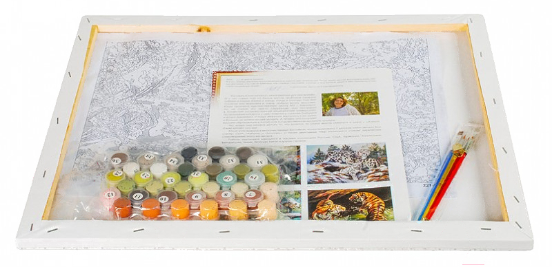 • Комплектация набора контрольный лист, краски, кисти, крепление