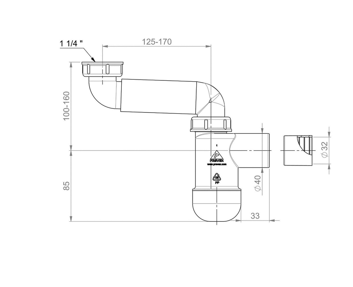 - Диаметр подключения сифона, см 40