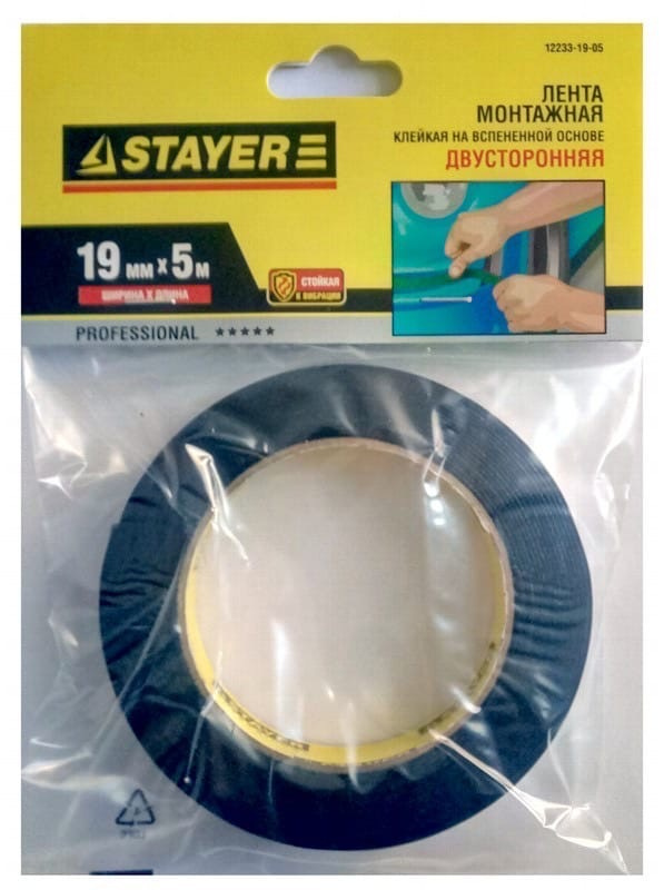 - Артикул Клейкая лента двусторонняя монтажная 19 мм х 5 м