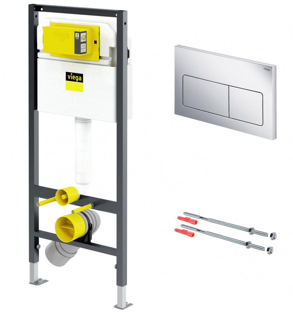 - Комплектация рама (30х30) с порошковым напылением, бачок скрытого монтажа 3H, пластиковая хромированная панель смыва с 2-мя кнопками (773717), присоединительный комплект для унитаза, крепеж, выдвижные фиксирующиеся опоры для регулировки высоты, подключение воды R½ с задней стороны, регулируемое по глубине соединительное колено для унитаза DN90 из полипропилена (PP), эксцентриковый переходник DN90/100 из РР