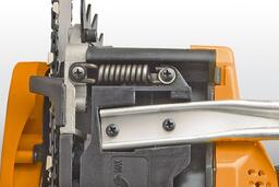 Полупрофессиональная пила; объем двигателя 50 см3; мощность 2 кВт; емкость топливного бака 0,55 л; емкость масляного бака 0,26 л; длина шины 45 см; антивибрационная система, тормоз цепи; вес 7,8 кг.