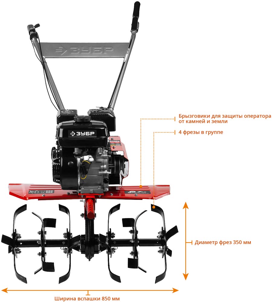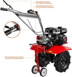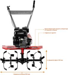 Мощность двигателя: 7 л.с, объем двигателя: 212 см3, объем топливного бака: 3.6 л, топливо: бензин, ширина культивации: 850 мм, глубина обработки: 350 мм.