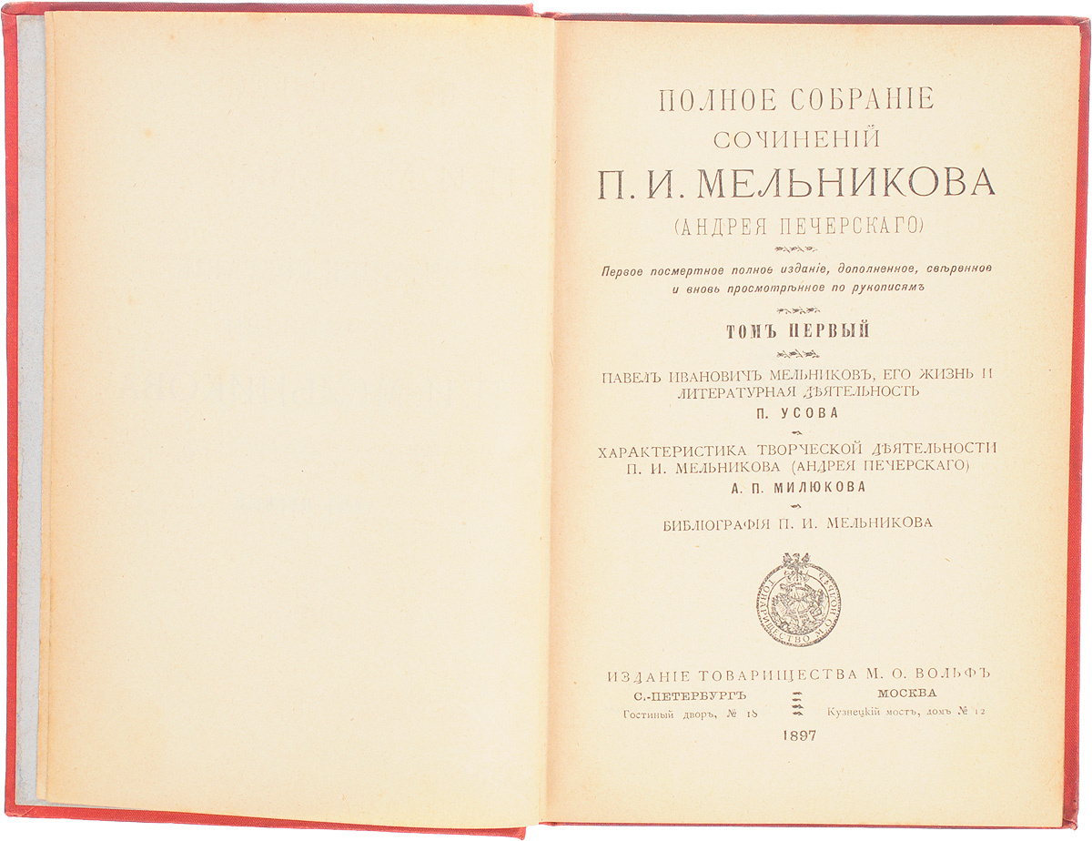 - Серия Полное собрание сочинений П. И. Мельникова (Андрея Печерского) в 14 томах (Товарищество М. О. Вольф)