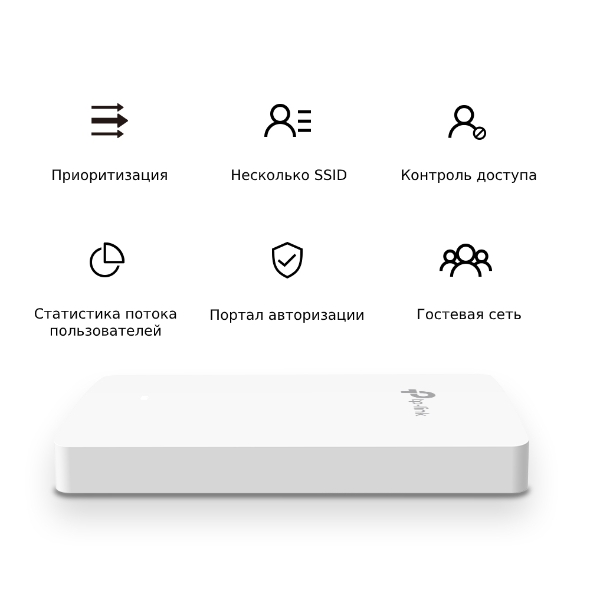 Защита беспроводной сетиПортал аутентификацииКонтроль доступаФильтрация MAC-адресовИзолирование беспроводных клиентовСоответствие SSID -> VLANVLAN на основе локального порта LANОбнаружение несанкционированных точек доступаПоддержка 802.1X64/128/152-битное шифрование WEP, WPA/WPA2-PSK, WPA/WPA2-Enterprise