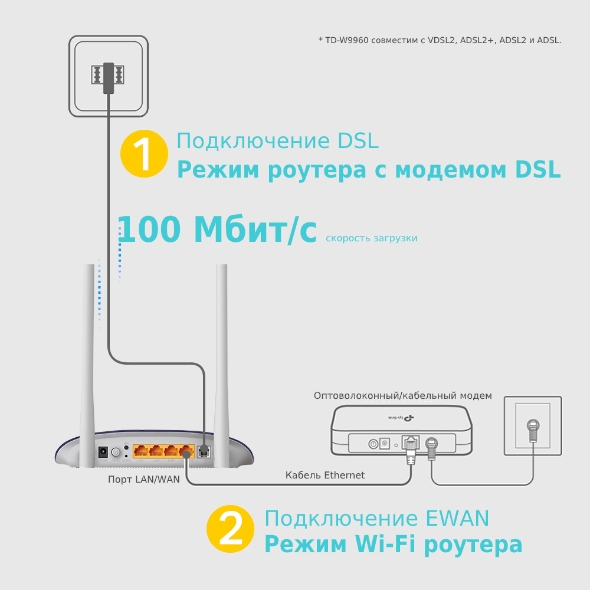 Рабочие режимыРоутер с модемом VDSL/ADSL, Wi-Fi роутер