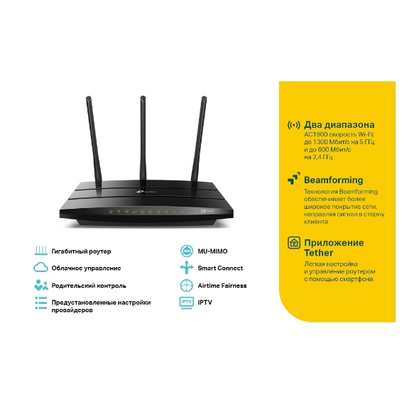 Комплект поставкиArcher A9Адаптер питанияКабель Ethernet RJ45 Руководство по быстрой настройке