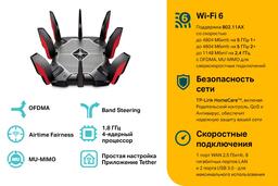 Пропускная способность Wi-FiОчень высокаяТри диапазонаПрисвойте каждому устройству свой диапазон для оптимальной производительности4×4 MU-MIMOОдновременная коммуникация с множеством клиентов MU-MIMOOFDMAОдновременная коммуникация с множеством клиентов Wi-Fi 6Airtime FairnessУлучшение эффективности сети за счёт одинакового времени передачи для всех клиентовDFSДоступ к дополнительному диапазону для разгрузки сети12 потоковУвеличенная пропускная способность для ваших устройствSmart ConnectАвтоматическое назначение каждого устройства на лучший из доступных диапазонов Wi-Fi
