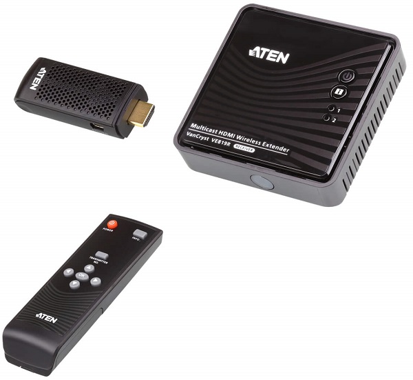 КомплектацияБеспроводной HDMI VE819T (передающее устройство) - 1 шт., беспроводной HDMI VE819R (принимающее устройство) - 1 шт., кабель Mini USB - USB - 1 шт., адаптер питания с кабелем Mini USB - 2 шт., кабель HDMI - 1 шт., пульт дистанционного управления с 2 батарейками типа AAA, кабель ИК-приемника - 1 шт., руководство - 1 шт.