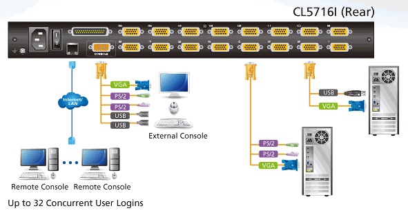 Индикаторы1 х Питание (темно-зеленого цвета), 1 x Num Lock (зеленого цвета), 1 x Caps Lock (зеленого цвета), 1 x Scroll Lock (зеленого цвета, 16 x KVM (оранжевого цвета), 1 x LAN 10/100 Мбит/с (оранжевого/зеленого цвета)