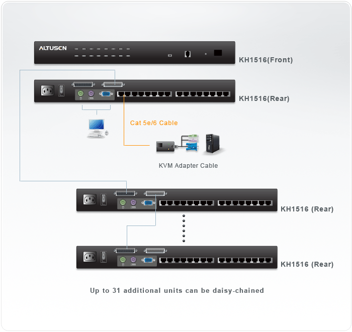 - Комплектация 1 x Высокоплотный KVM-Переключатель KH1516A с кабельной системой категории 5, 1 x Кабель для обновления встроенных программ, 1 x Шнур питания, 1x провод заземления, 1х комплект для монтажа в стойку, 1х комплект ножек (4 шт.), 1x руководство пользователя