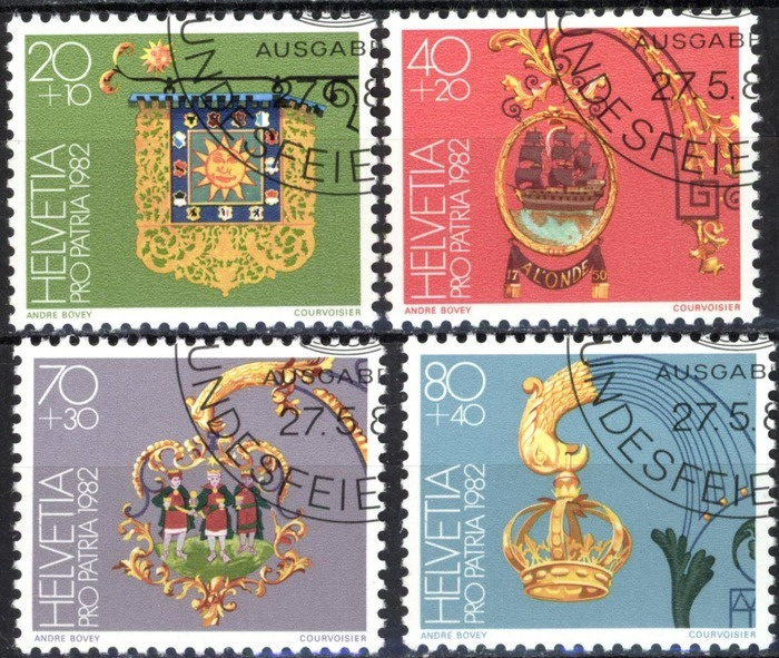 Гашеная серия марок Швейцарии. Почтовые Знаки. 1982г.
