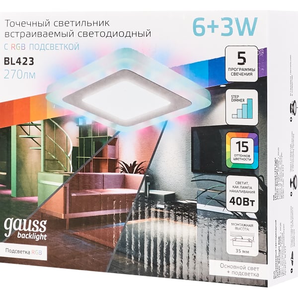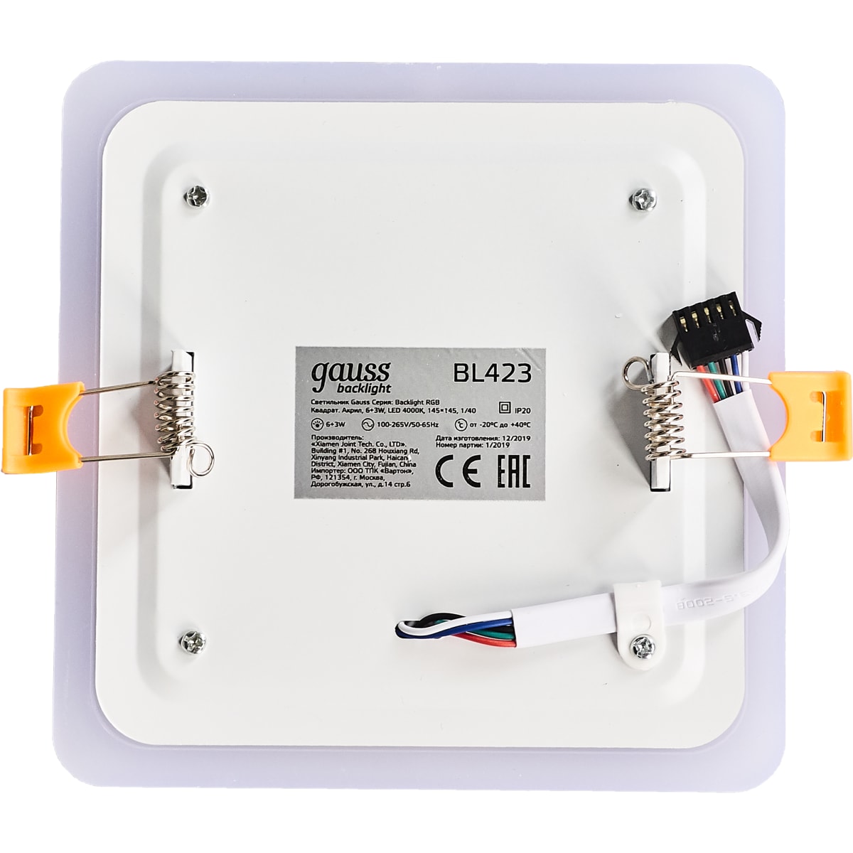 Светильник точечный светодиодный встраиваемый Gauss Backlight RGB BL423 под отверстие 120 мм, 2.25 м², RGB, цвет белый