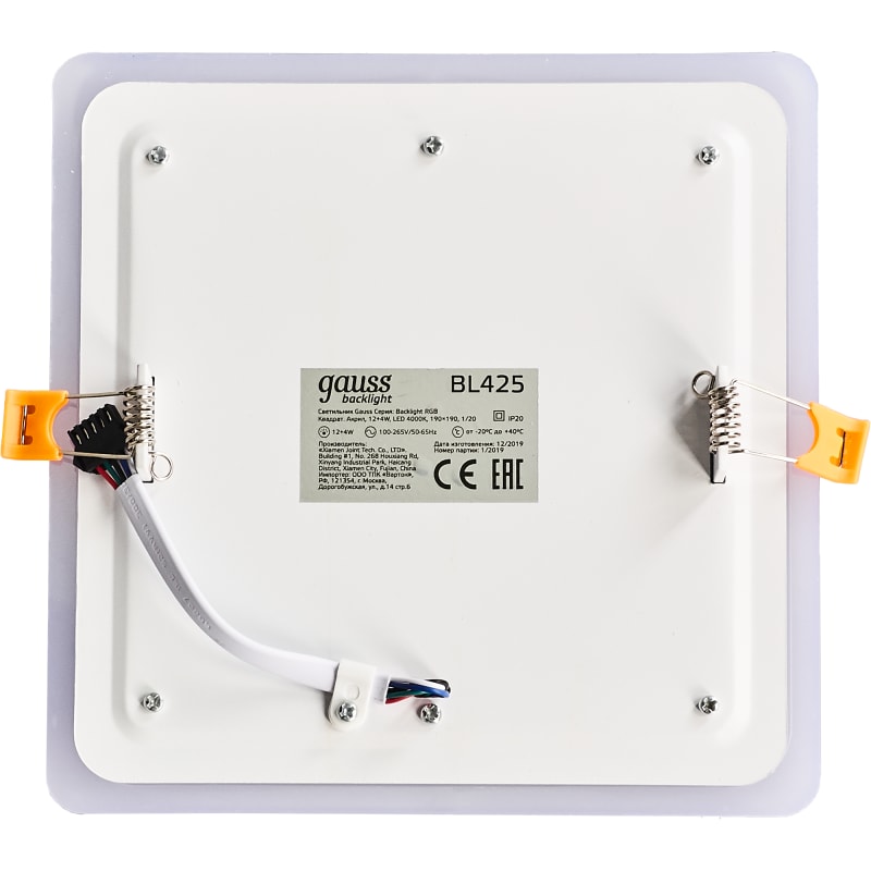 Светильник точечный светодиодный встраиваемый Gauss Backlight RGB BL425 под отверстие 170 мм, 4 м², RGB, цвет белый